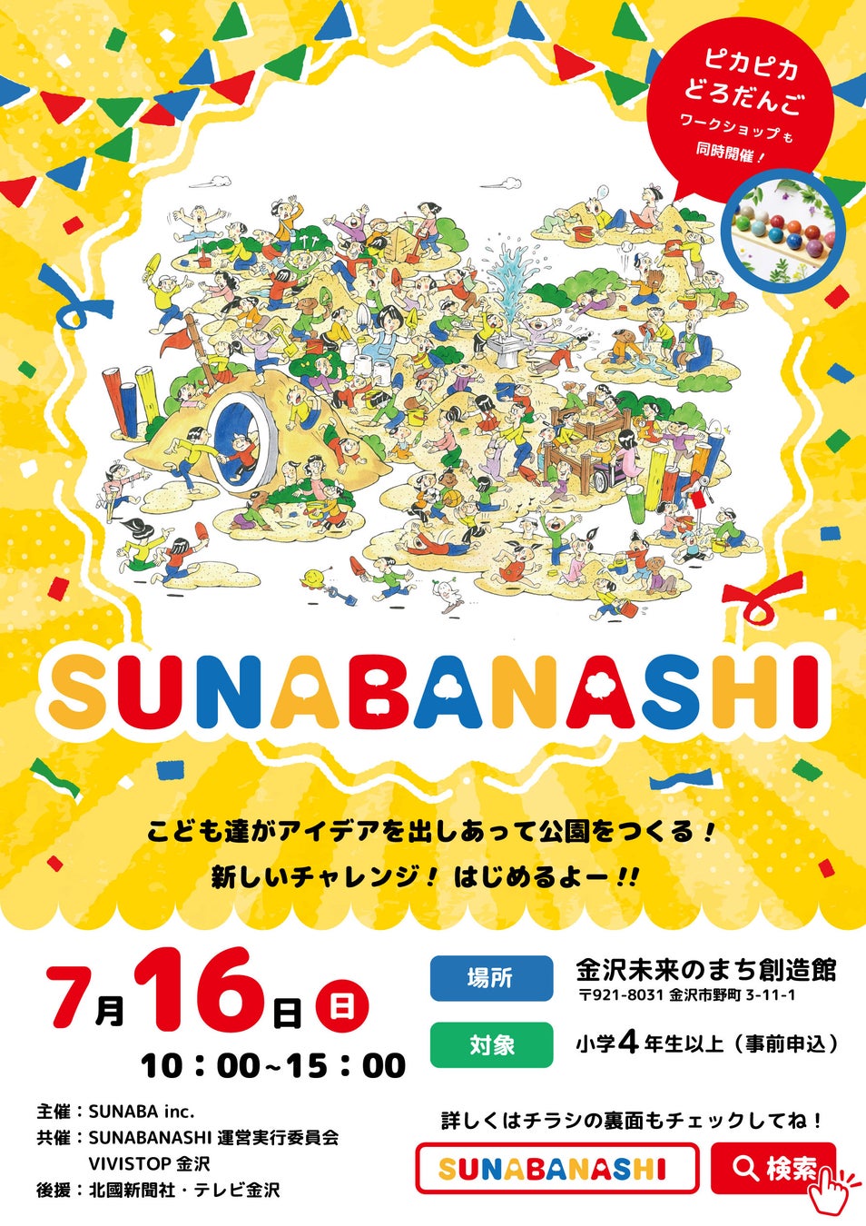 SUNABA inc.が「SUNABANASHI」の開催を発表。「砂場から幸せな景色を取り戻す。」「砂場からこども達の創造力を取り戻す。」 をスローガンに金沢にて7/16開催決定