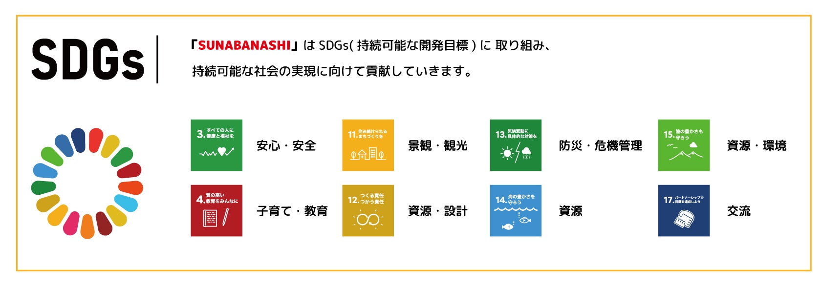 「SUNABANASHI」はSDGsに取り組み、持続可能な社会の実現に向けて貢献していきます。