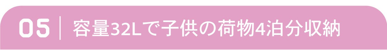 コンパクトな機内持ち込みサイズなのに大容量。お子さまがいると増えがちな荷物も安心して収納可能です。