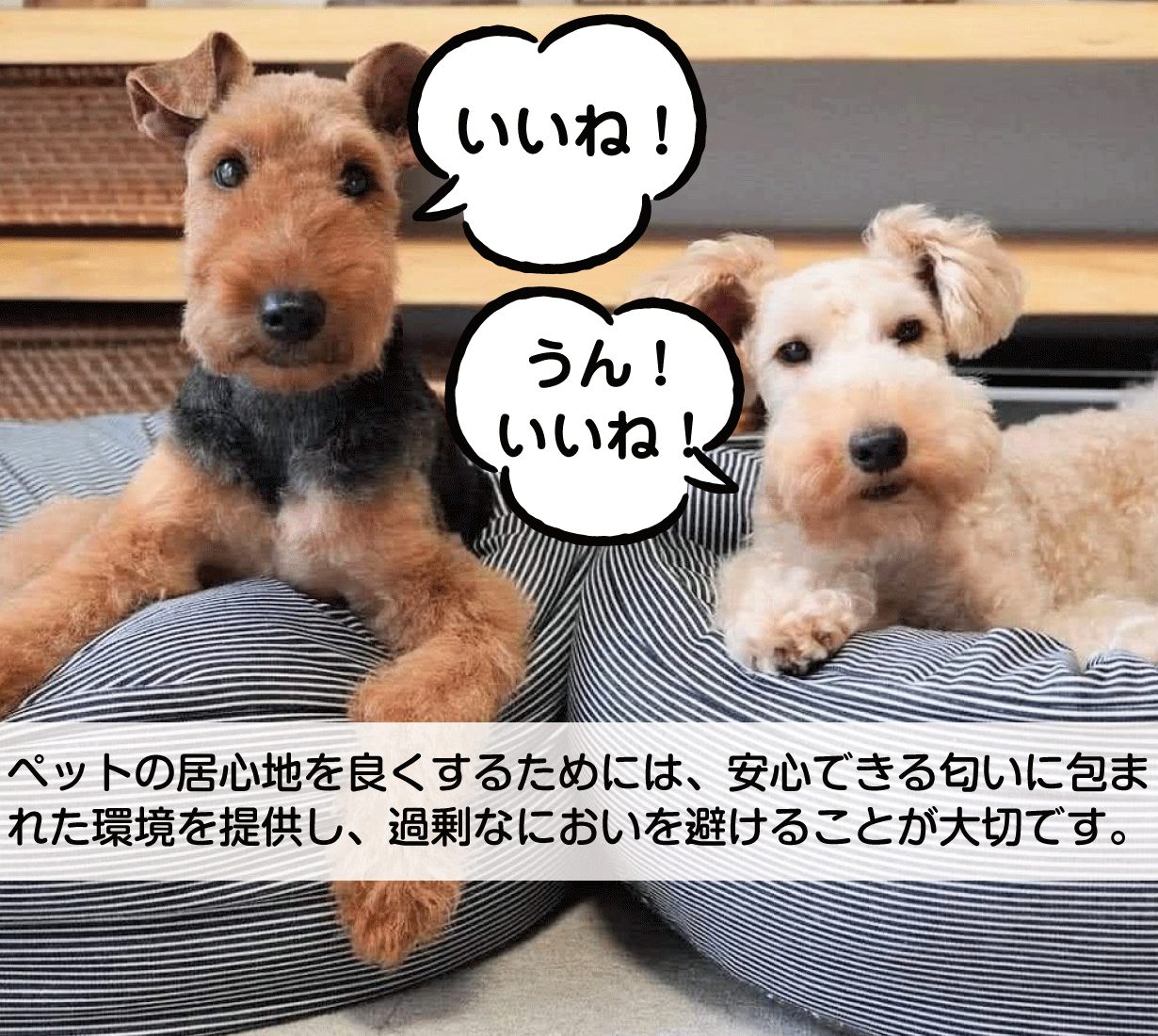 しかし、不快な匂いが増えると、それが安心できる匂いと競合し、ペットが安心できる匂いに気づく確率が低下する可能性があります。これは飼い主として注意すべきポイントで、ペットのために快適な香りの環境を維持することが重要となります。