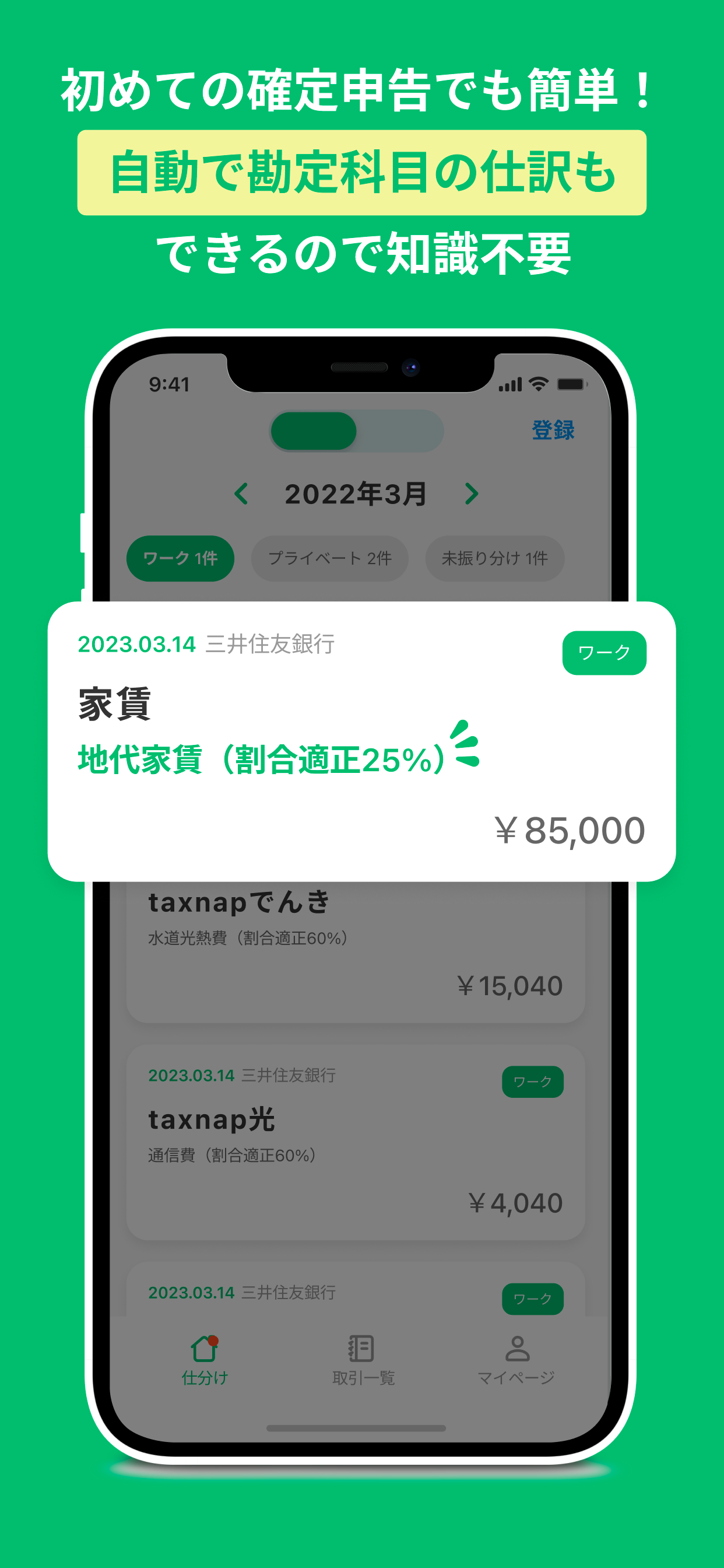 「ふとした隙間時間に使えるので仕分けが溜まらず、確定申告に関するストレスがなくなりました」
