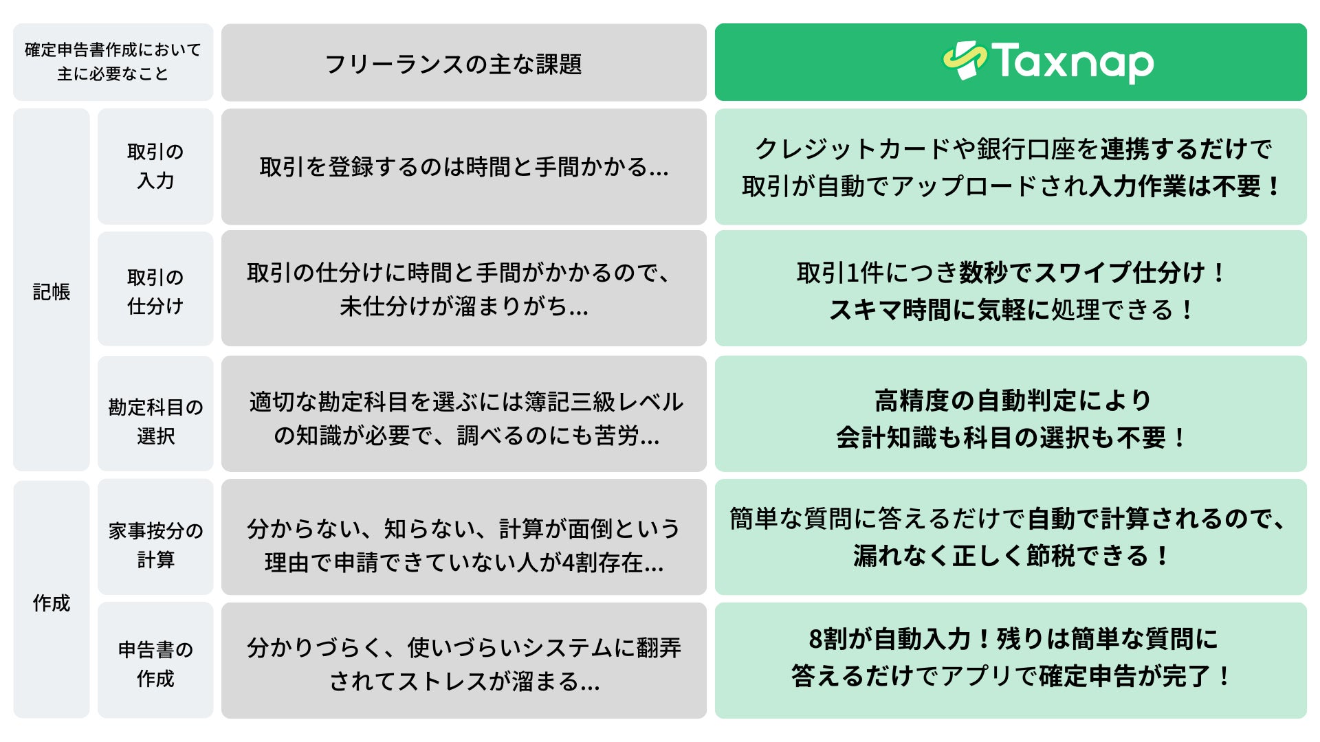 確定申告においての主な課題をTaxnapで解決