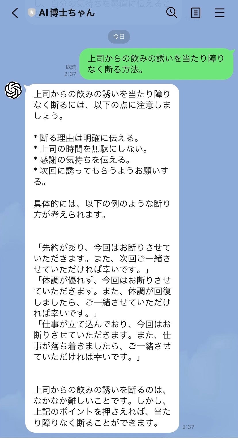 株式会社REGALO(本社:東京都港区 代表取締役:佐藤唯斗、以下「当社」)は、2023年6月13日(火)にGoogle BardのAPIを利用したLINE bot「AI博士ちゃん」をリリースしました。