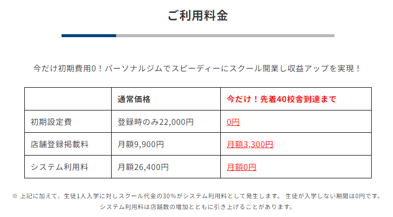 ※学費に対して30%システム利用料としてトレーナーシップへ入金となります。