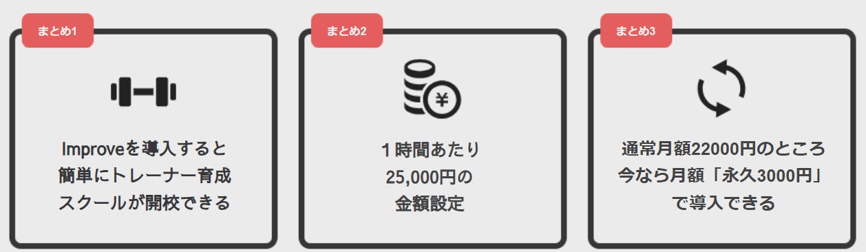 Improveはトレーナースクールの開業から集客・顧客管理まで ワンストップで導入できるシステムです。