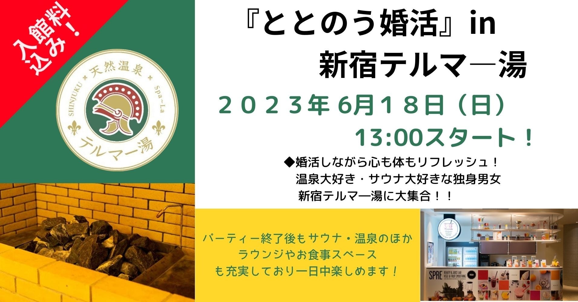 入館料込み!お得感満載!!『ととのう婚活』in 新宿テルマ―湯 2023年6月18日(日)に開催!