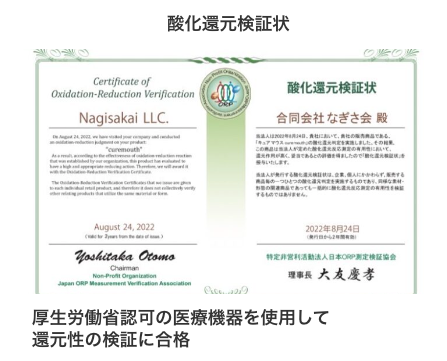 (日本ORP測定協による、還元検証試験合格)