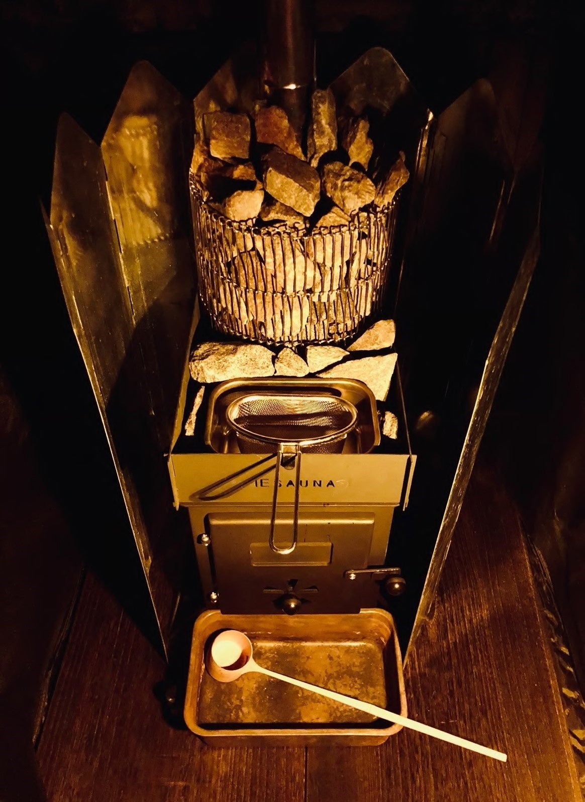 バイオエタノール燃料を用いて、無煙を実現した家庭用テントサウナ
