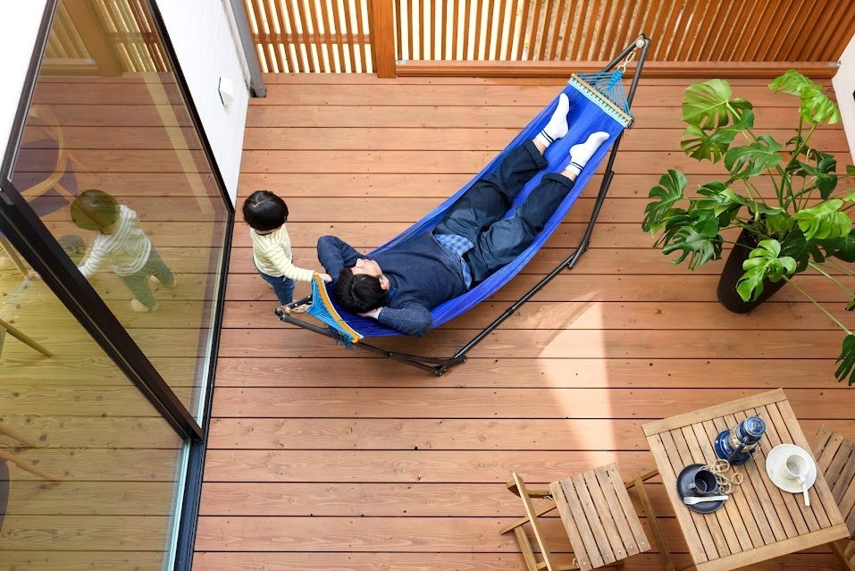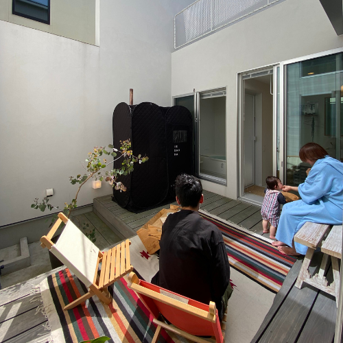 中庭(ソラマドデッキ)でサウナを利用することで、ご自宅の庭先にリラックスと癒しのスペースを作り出すことができます。