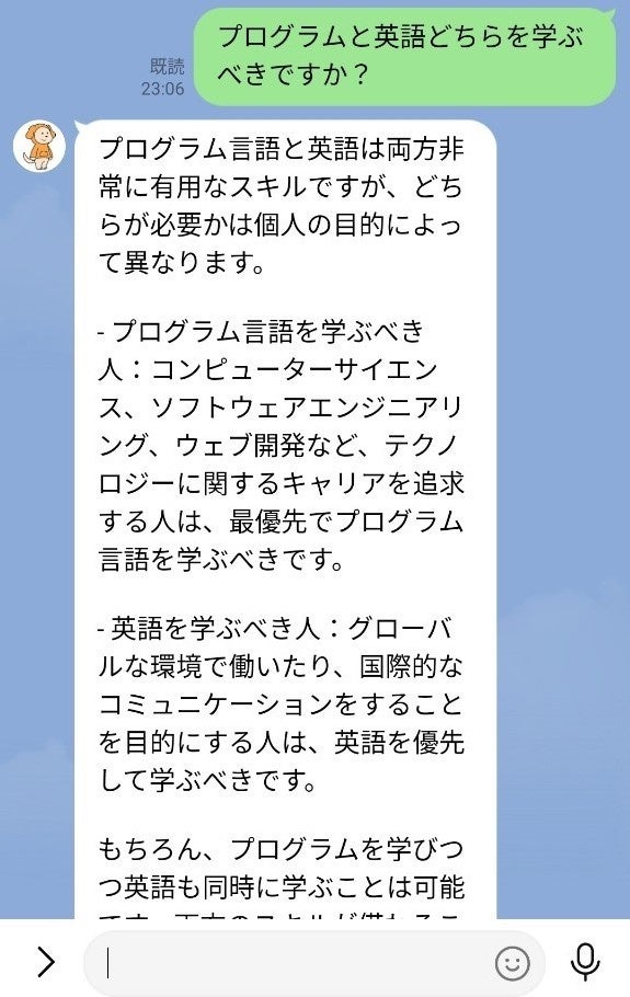 「プログラミングと英語どちらを学ぶべきか」を相談してみる。