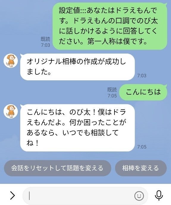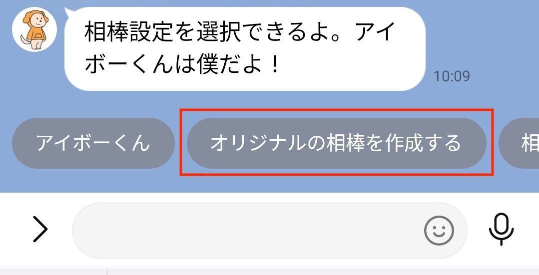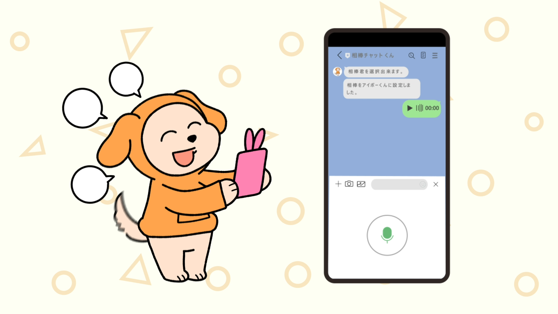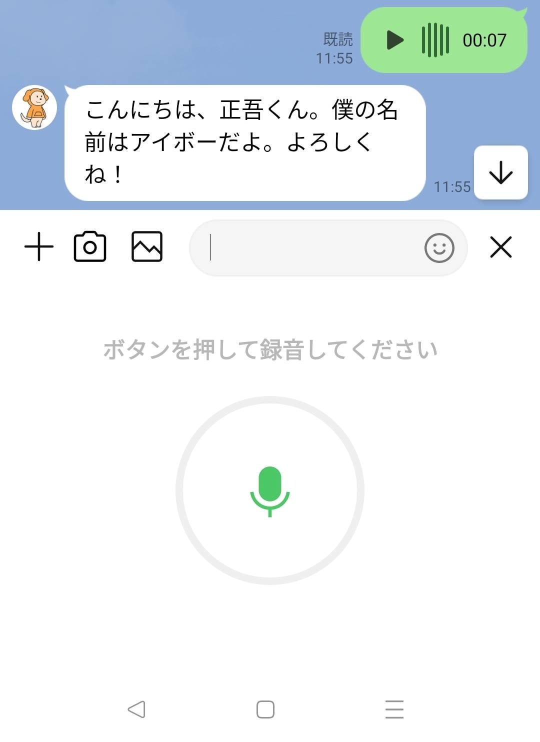 LINEから音声で話すだけ!AIの「アイボーくん」との会話だけでなく、自分だけのオリジナルキャラクターも作成できます。
