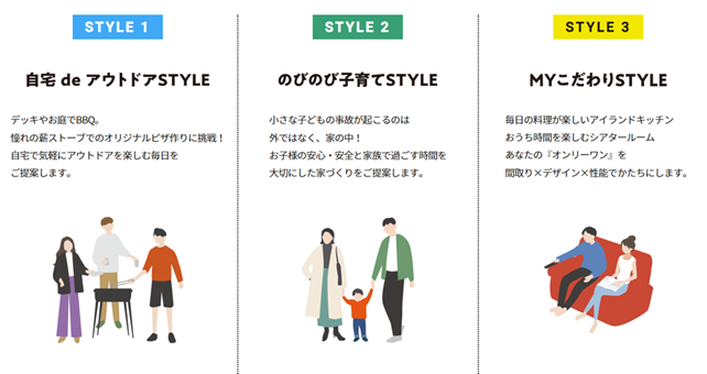 ウッドエッグヒルズ名取には、それぞれの願いに応える3つのコンセプト街区を設定。