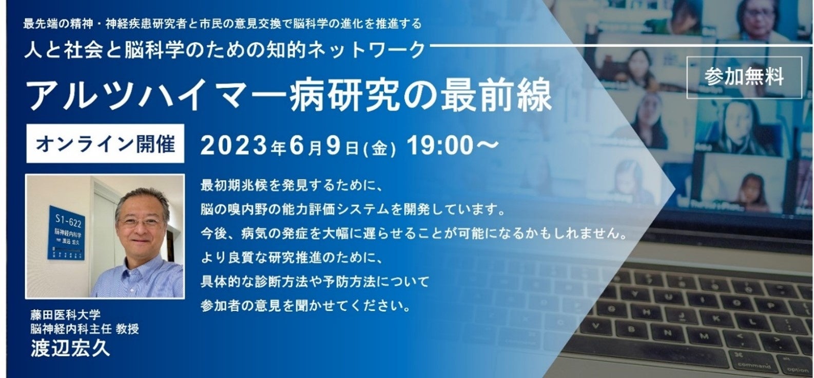 6月9日(金)には、アルツハイマー病初期兆候を見つける手法の開発を行う藤田医科大学脳神経内科 渡辺宏久先生によるオンライン対話イベントを開催します。