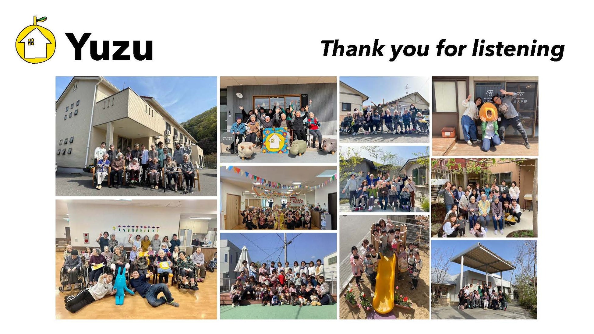 ゆずの皆様、アワードの受賞、おめでとうございます!!手強いライバルたちがいる中で、ゆずがグランプリを受賞すると信じていました。ゆずが提供するケアと場づくりは、人々の心を動かし、私が進める「ともに生きるケア」の研究にも大きな影響を与えています。特に今回、資料作成と発表のサポートという形で関わらせていただき、その深い魅力に改めて触れる機会がありました。みなさんと一緒にシンガポールへ行き、アワードを受賞したのは、かけがえのない思い出です。皆様の活動が高齢者ケア業界を更に切り開き、新たなケアの形を創造し続けることを心から期待しています。
