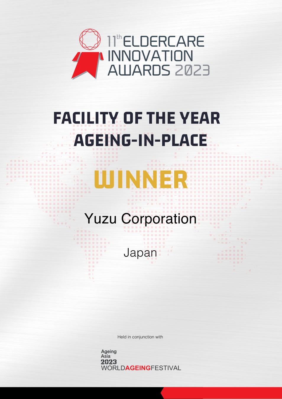 株式会社ゆずは、15カ国から200以上の応募がある中で、施設部門の中で最も優れた施設を表彰するFACILITY OF THE YEAR-AGEING-IN-PLACEのファイナリストとして選定されていました。
