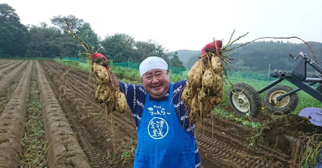 芋洗坂係長が自ら芋掘り、芋洗い、芋撰別、かくはん作業、ラベルデザインなど