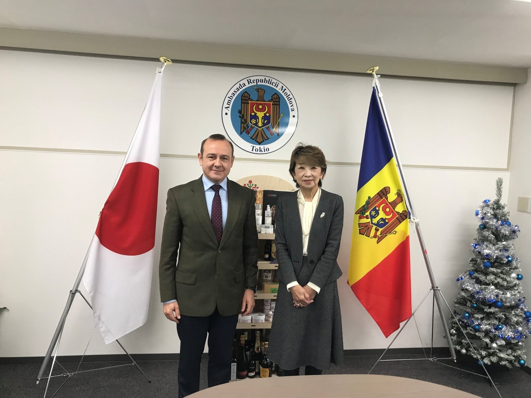 2021年12月モルドバ駐日大使館訪問時、ドゥミトル・ソコラン大使、吉田悦子ゼネラルマネージャー