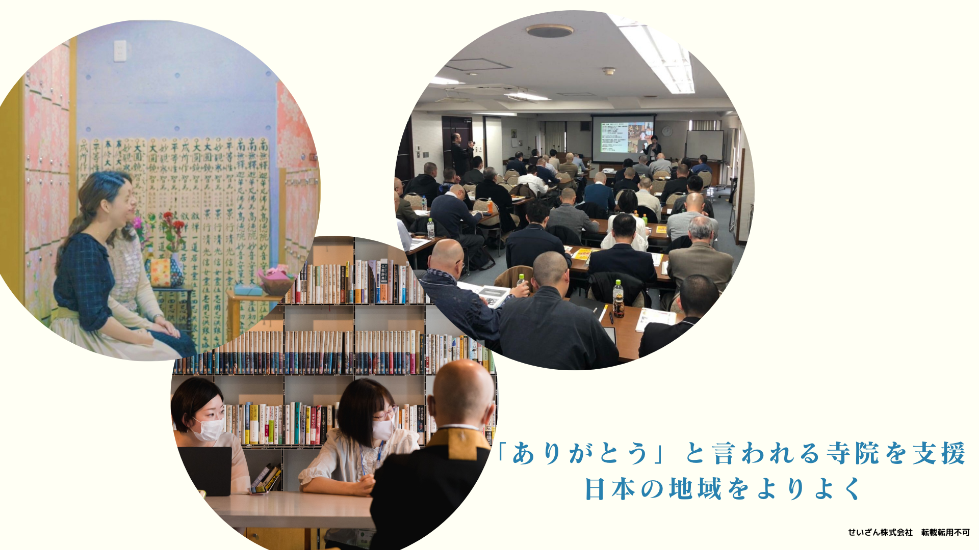 事業内容:せいざん株式会社は企業理念である「敬う心をひろげ、次世代につなぐ」ことを目的に寺院活動支援、