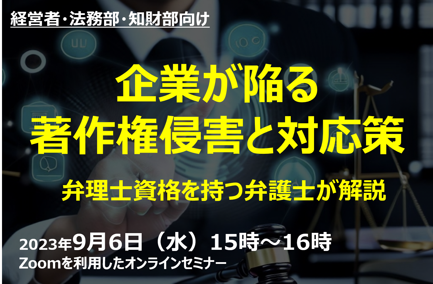 『企業が陥る著作権侵害と対応策』をテーマに弁理士資格を持つ弁護士が9月6日(水)無料オンラインで開催