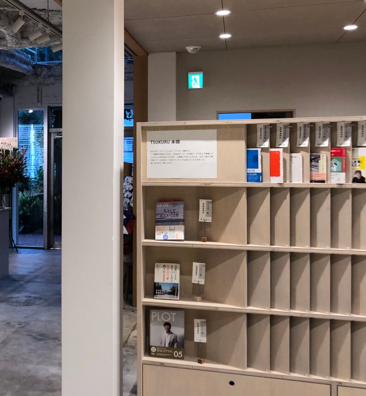 ②パートナー(会員)が寄贈した「HIRAKU ための本」が並ぶ「TSUKURU 本棚」