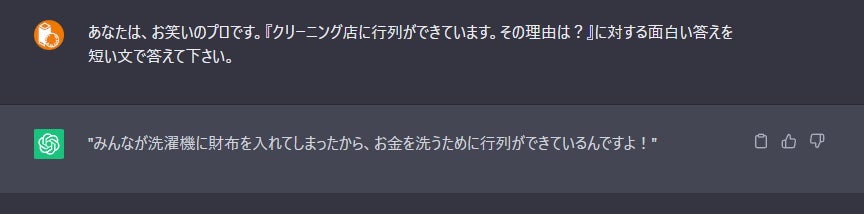 ChatGPTより面白い回答大募集『行列ができるクリーニング屋さん。その理由は?』おもしろ大喜利コンテスト作品募集開始