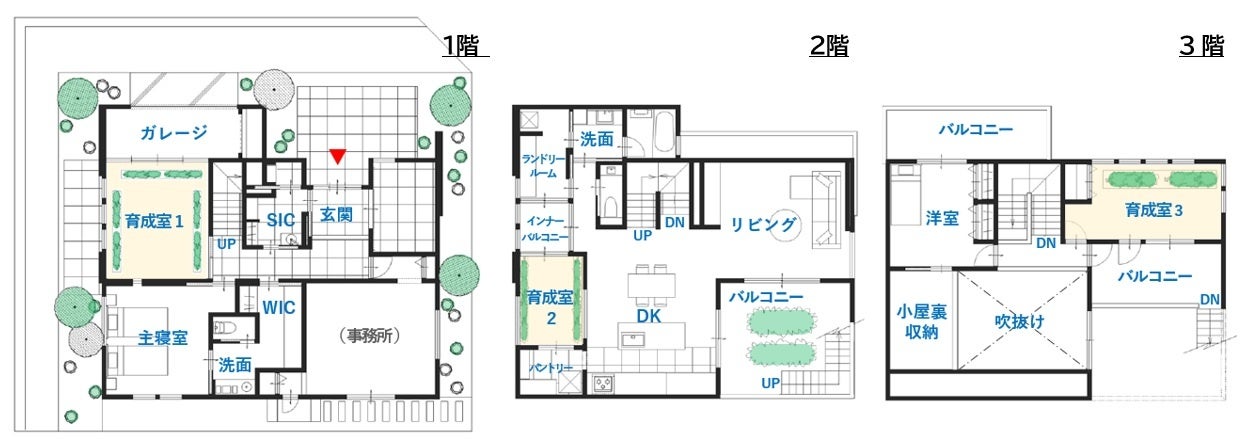 ●住まいの各フロアに「育成室」をレイアウト。日常生活の中に農業がある暮らしが可能となります。