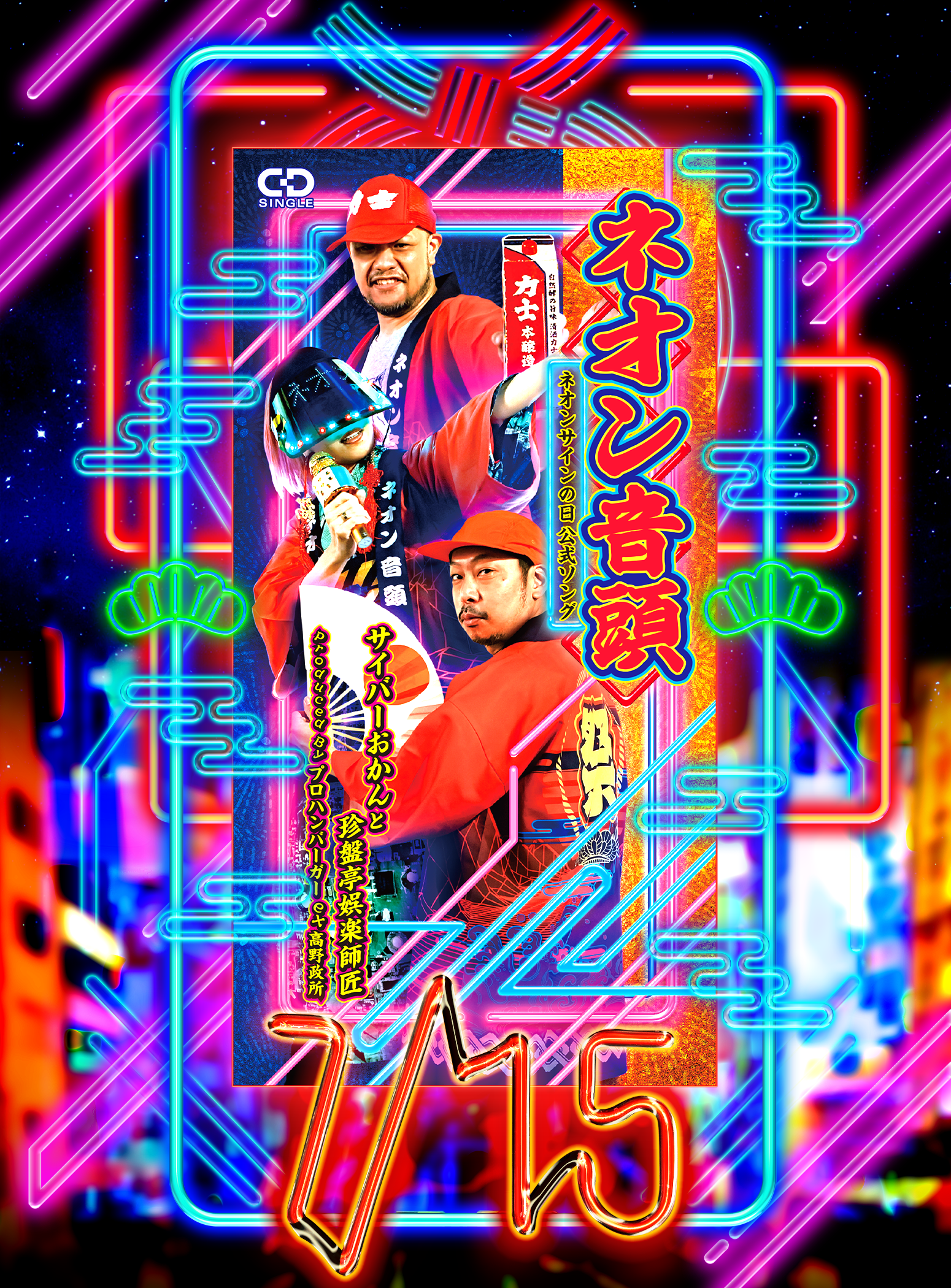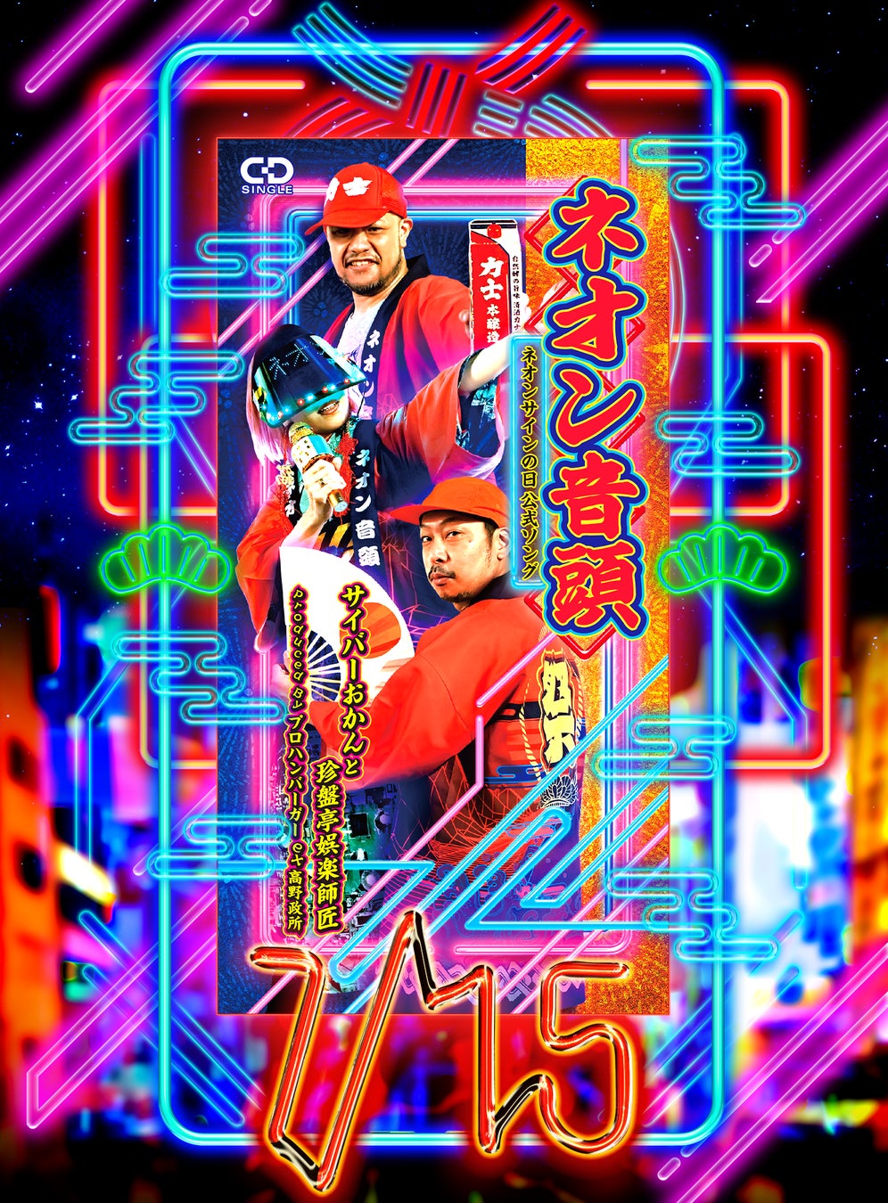 7月15日はネオンサインの日。サイバーおかん、珍盤亭娯楽師匠のネオン音頭発表に8cmCDリリースも決定。