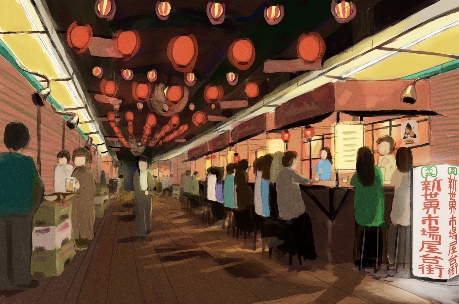 インバウンドが戻りつつある大阪新世界で、新世界市場はかつてのタイの「カオサン通り」のような異国感と活気溢れる空間を目指しています。全8台の屋台のうち残り4店舗に、個性豊かで活気のある新店舗を募集します。