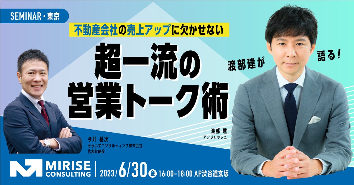 これまで不動産会社向けのセミナーを多数企画してきた、みらいずコンサルティング株式会社が、書籍「超一流の会話力」の著者であるアンジャッシュの渡部建氏を講師に招き、コミュニケーションの極意についてお話しいただきます!