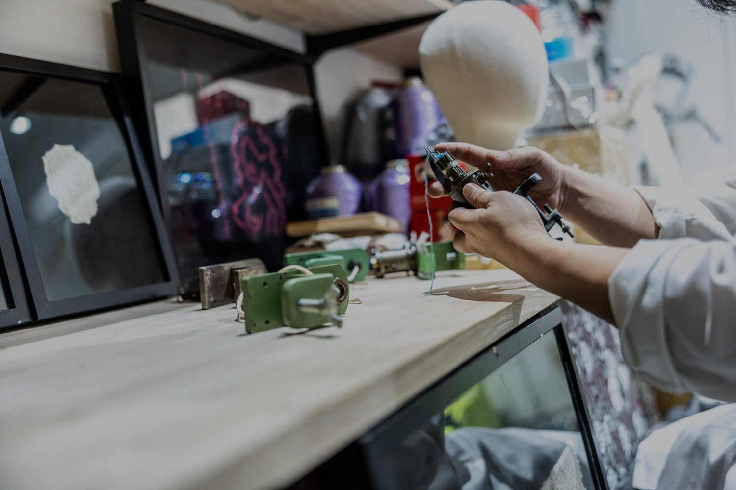 ナデ・ワーカースでは、「一点物の魅力と繊維の調和」をキーワードに、高級志向と低コスト思考の二極化をしている消費者に対し、一点物の魅力を発信する製品の製造にこだわっています。代表の小野がこれまで舞台衣装の企画・制作・販売に携わった経験から、他では見られないオリジナリティあふれる作品が並びます。