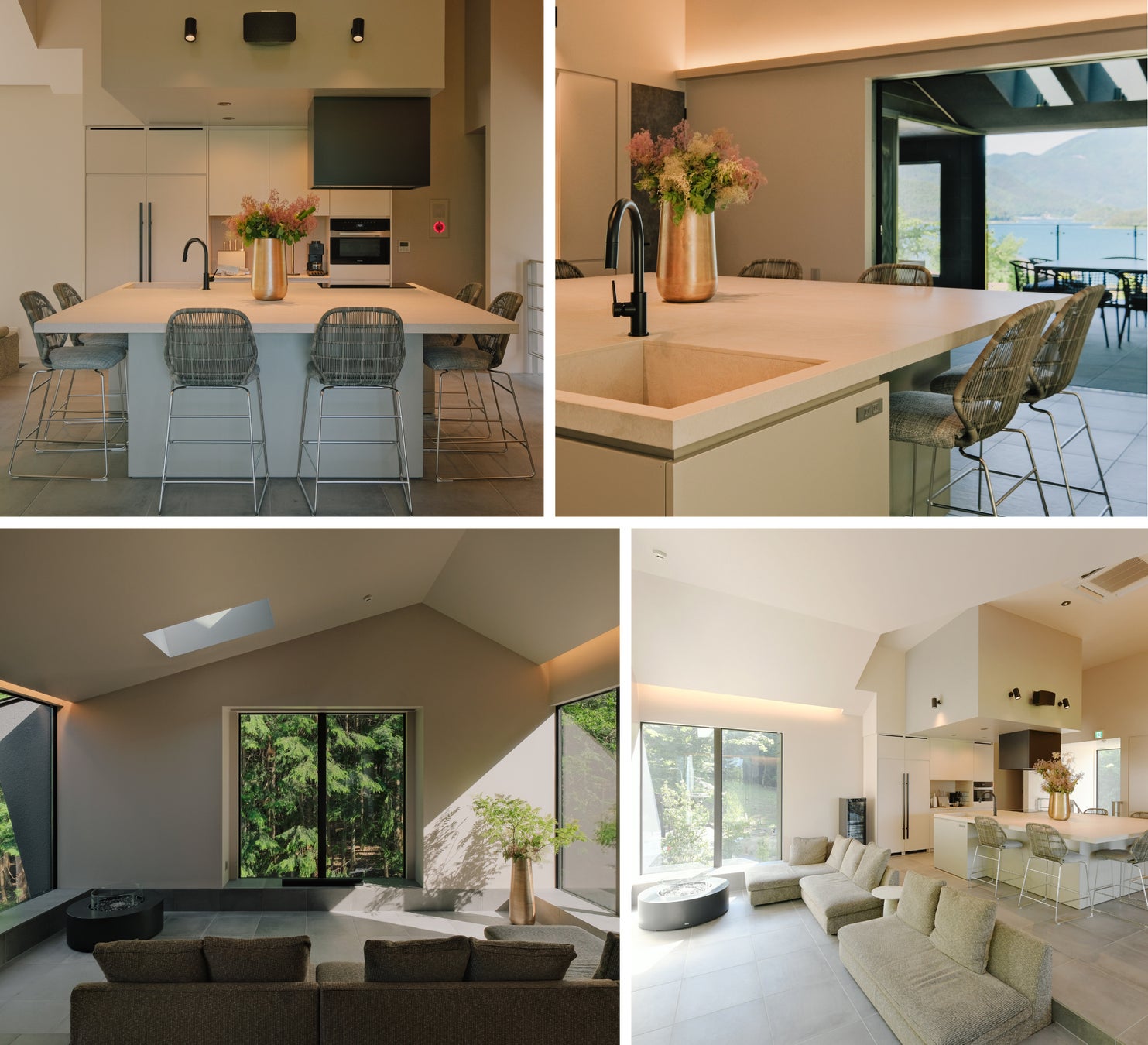 国際的なコンペティション「A' Design Award & Competition」において、評価を頂いたことを大変嬉しく思いますし、光栄に思います。今回の受賞は、プロジェクトに関わる全てのメンバーにとって大変名誉なことです。“チル”と“アート”をテーマにデザインされたプライベートホテルhotel norm. air fujiは、センシティブ、ノスタルジック、ミニマルと言うデザイン上のコンセプトをベースとして、ラグジュアリーなチル体験の提供を目指して計画されました。河口湖の景色を存分に楽しむため、屋根のあるバルコニーを設け、airの言葉の通り、空中に浮いた感覚で河口湖の空気を最大限感じられる設計です。建物の意匠性と自然環境の調和を目的とし、周囲に影響を与えない様に外観を黒一色でまとめ、自然環境に溶け込むように配慮しました。仕上材には木材を使用せずに自然の木々を借景として、人の生みだすアートと周辺の自然を同時に楽しめる空間としました。室内には出来るだけ物理的な間仕切りは設けず、床の高低差や着座時の視点の変化で感覚的な空間分けを行いました。それにより、リビングダイニングからバルコニー、そしてサウナに繋がるアウトドアバスルームまで、室内外が繋がる一つの広い空間に感じられるように計画しました。是非、多くの方に体感して頂きたいです。