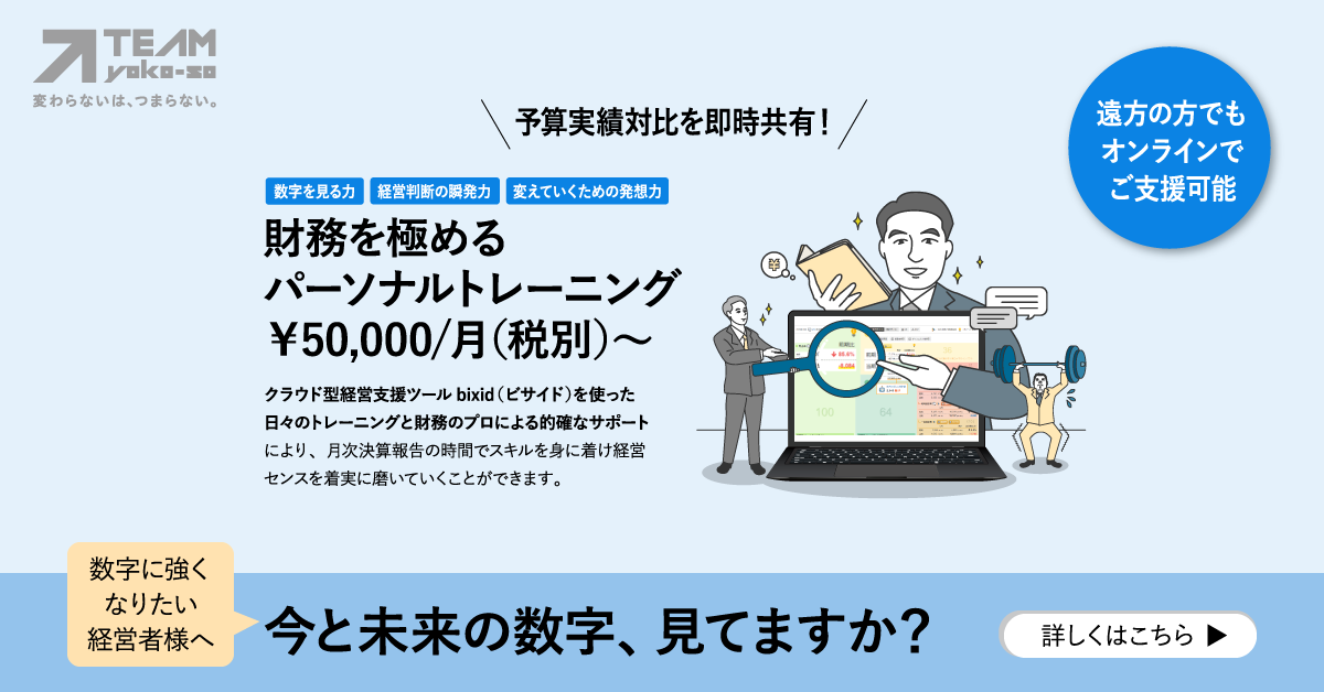 経営者向け新サービスで「今と未来の経営数字」を見る!横浜総合事務所(TEAMyoko-so)が、経営支援クラウド「bixid」を活用したパーソナルトレーニングを開始しました。