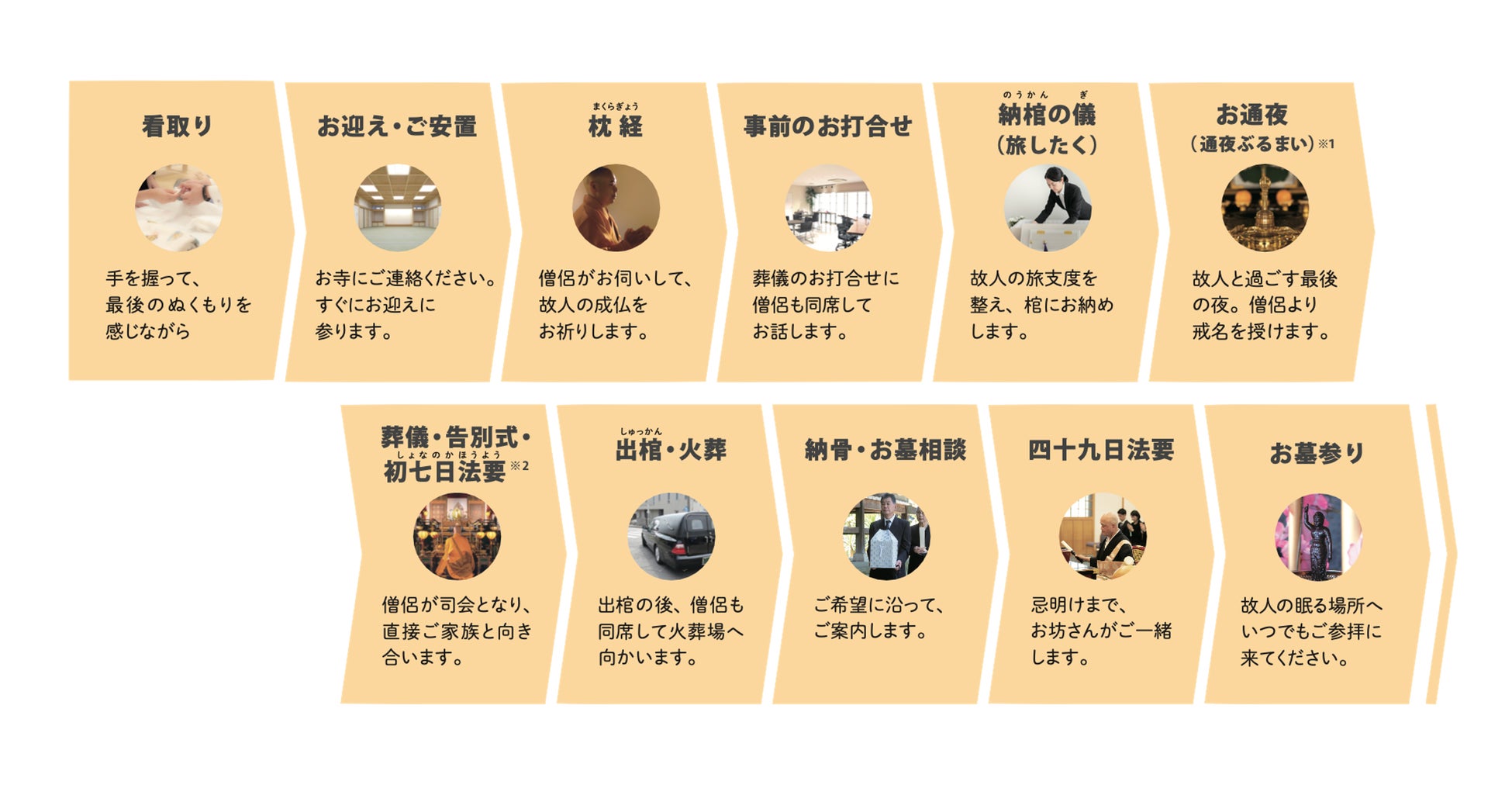【1】はじめのご連絡から四十九日法要まで。~お坊さんが主体、お寺で一貫した流れとして対応~