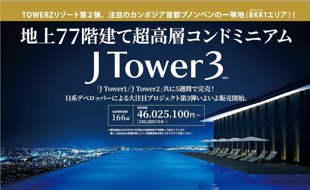 販売開始からわずか5週間で全戸完売を達成した「J TOWER1 2015年/24階建」「J TOWER2 2019年/43階建」に続く、日系デベロッパー「タニチューアセットメント社」によるタワープロジェクト第三弾。