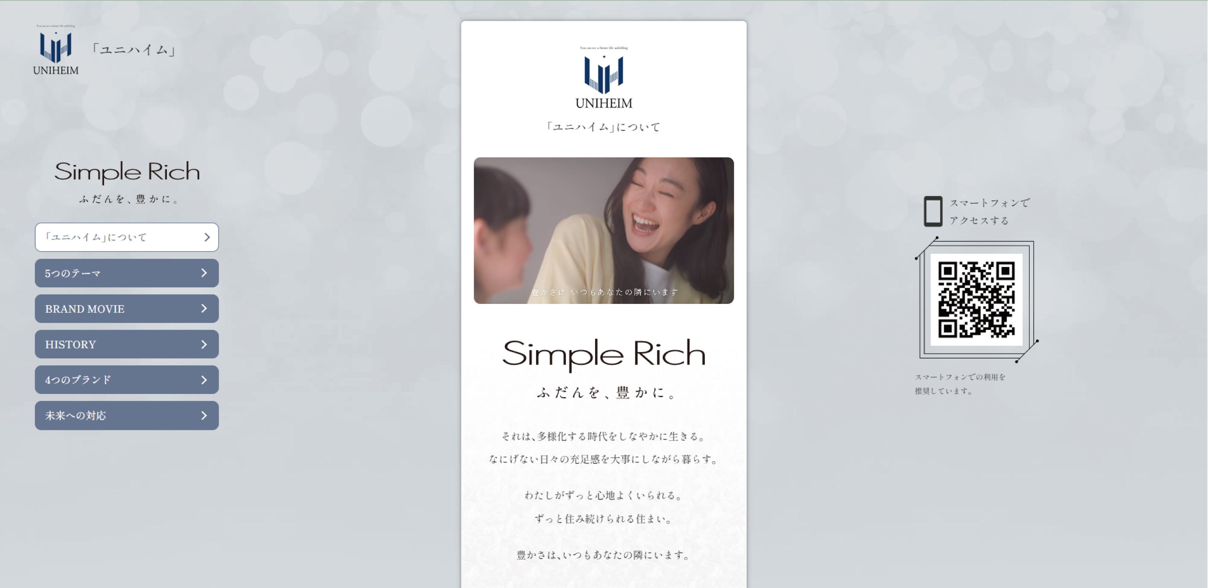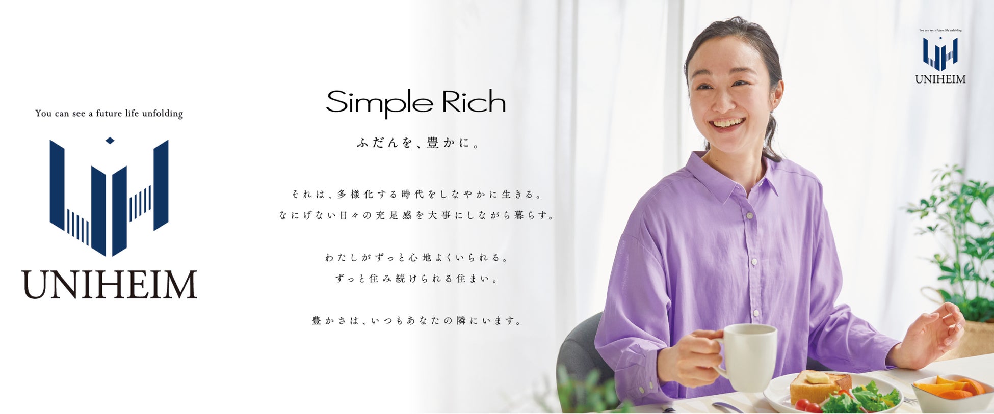 住まう人とまち、そして未来を想い、すみずみにまで心配りを行き届かせたマンションブランド『UNIHEIM』。なにげない日々の中でふと豊かさを感じる、“Simple Rich ”な住みごこちをお届けします。