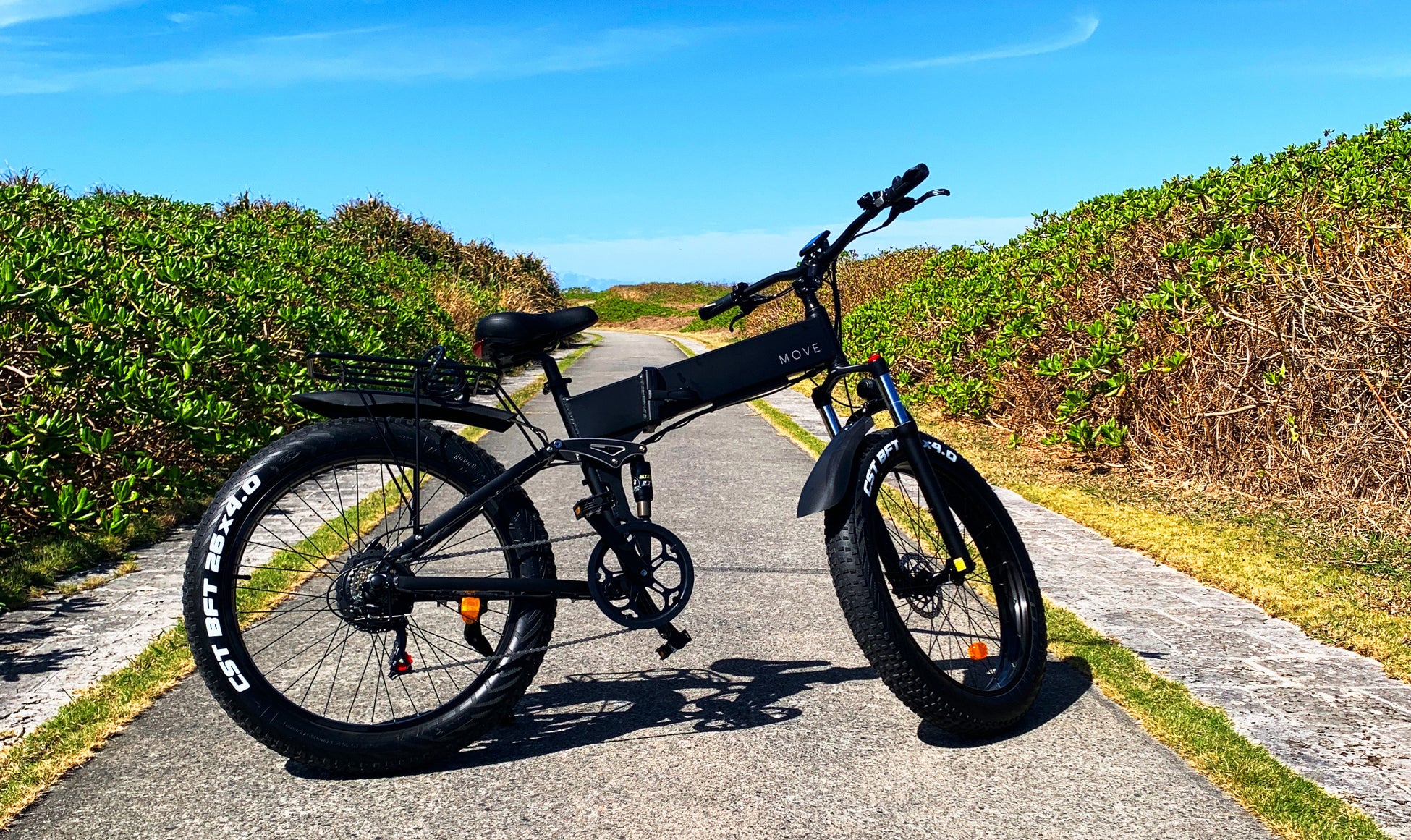 沖縄の景色に映えるe-bike「MOVE X(26インチファットバイク)・MOVE XS(20インチファットバイク)」や乗りやすくパワーのある電動アシスト自転車をご用意しております。