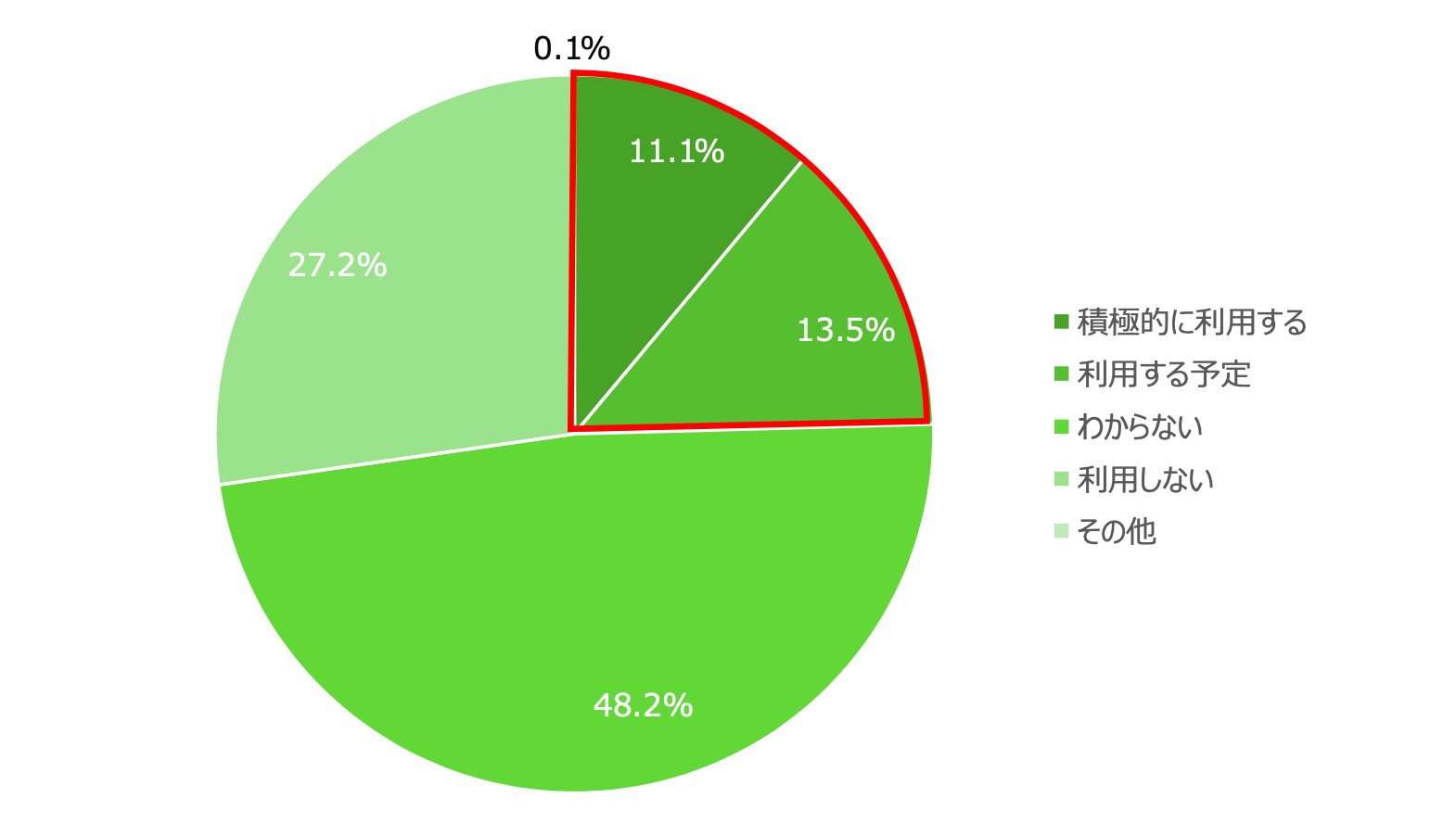 一方、「利用しない」と回答した人は27.2%で利用する予定の割合を上回り、「わからない」と回答をした人は48.2%と約半数にのぼりました。