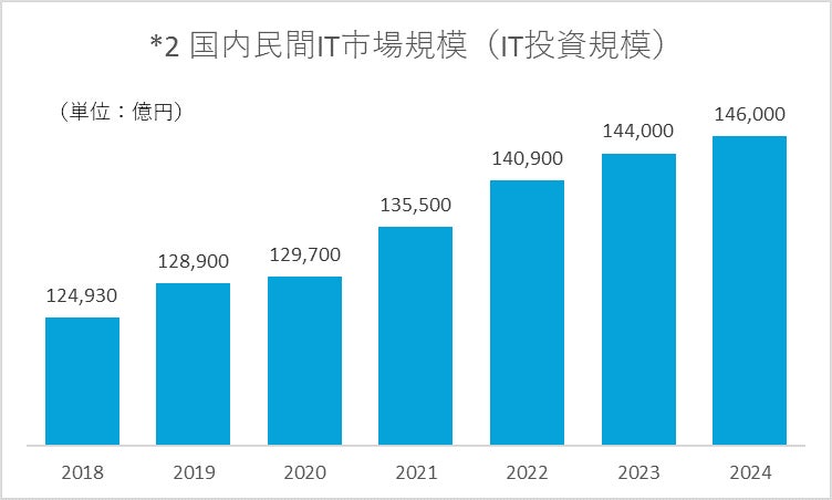 矢野経済研究所の調査(*2)によると、国内企業のIT投資の規模は拡大を続けており、ITの活用は企業のビジネスの成否を左右する重要事項となっています。