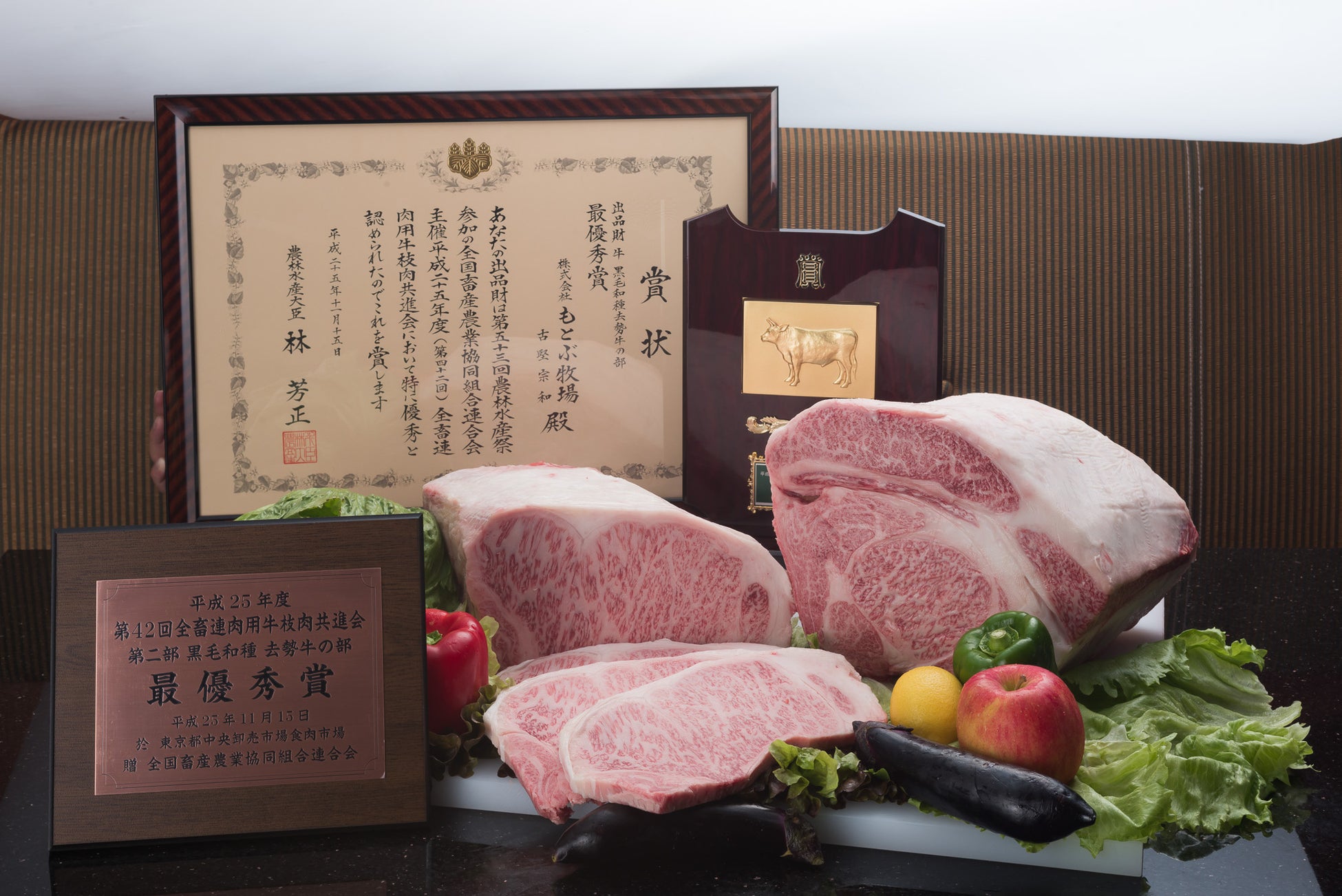 自然豊かな沖縄・やんばるで豊かな自然と人の愛情でのびのびと育てられた、沖縄ブランド黒毛和牛。口溶けの良さととろけるような甘みが特徴です。これまで、農林水産大臣賞 最優秀賞、全国霜降牛研究会・和牛部門 優秀賞など、数々の賞をいただいています。