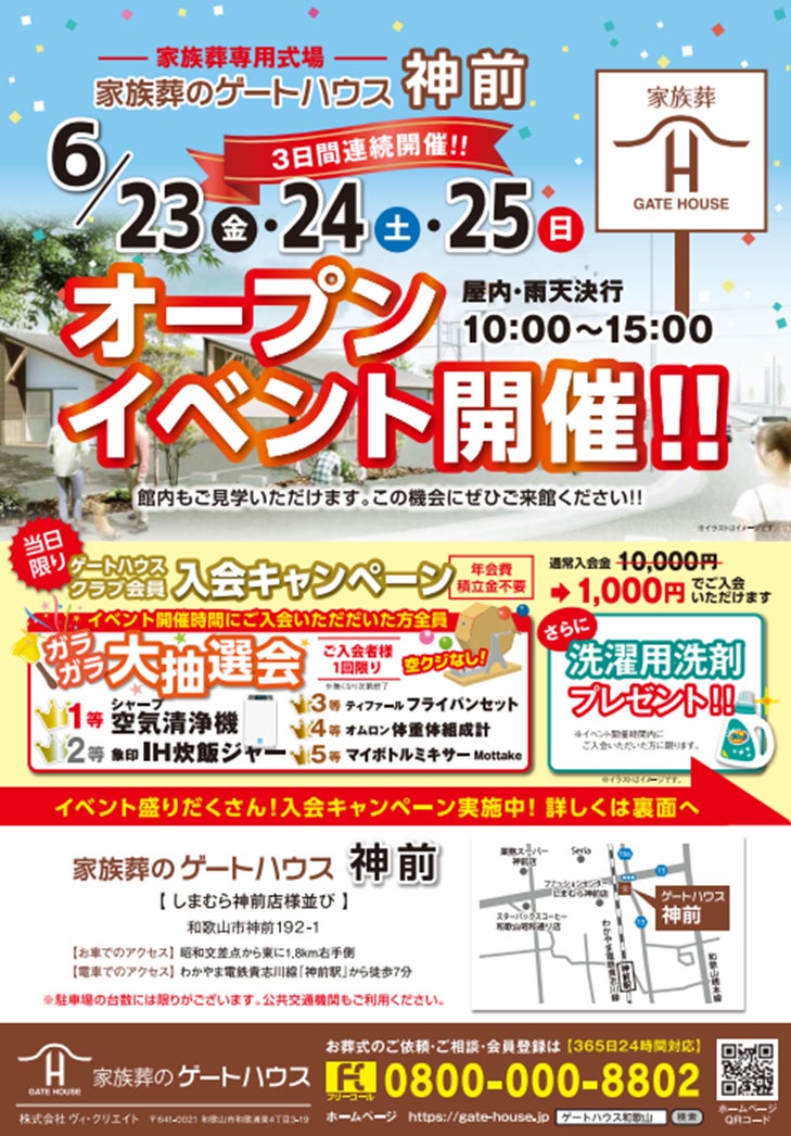 和歌山市 神前(こうざき)に家族葬専用式場「ゲートハウス神前」が6月26日(月)にオープン