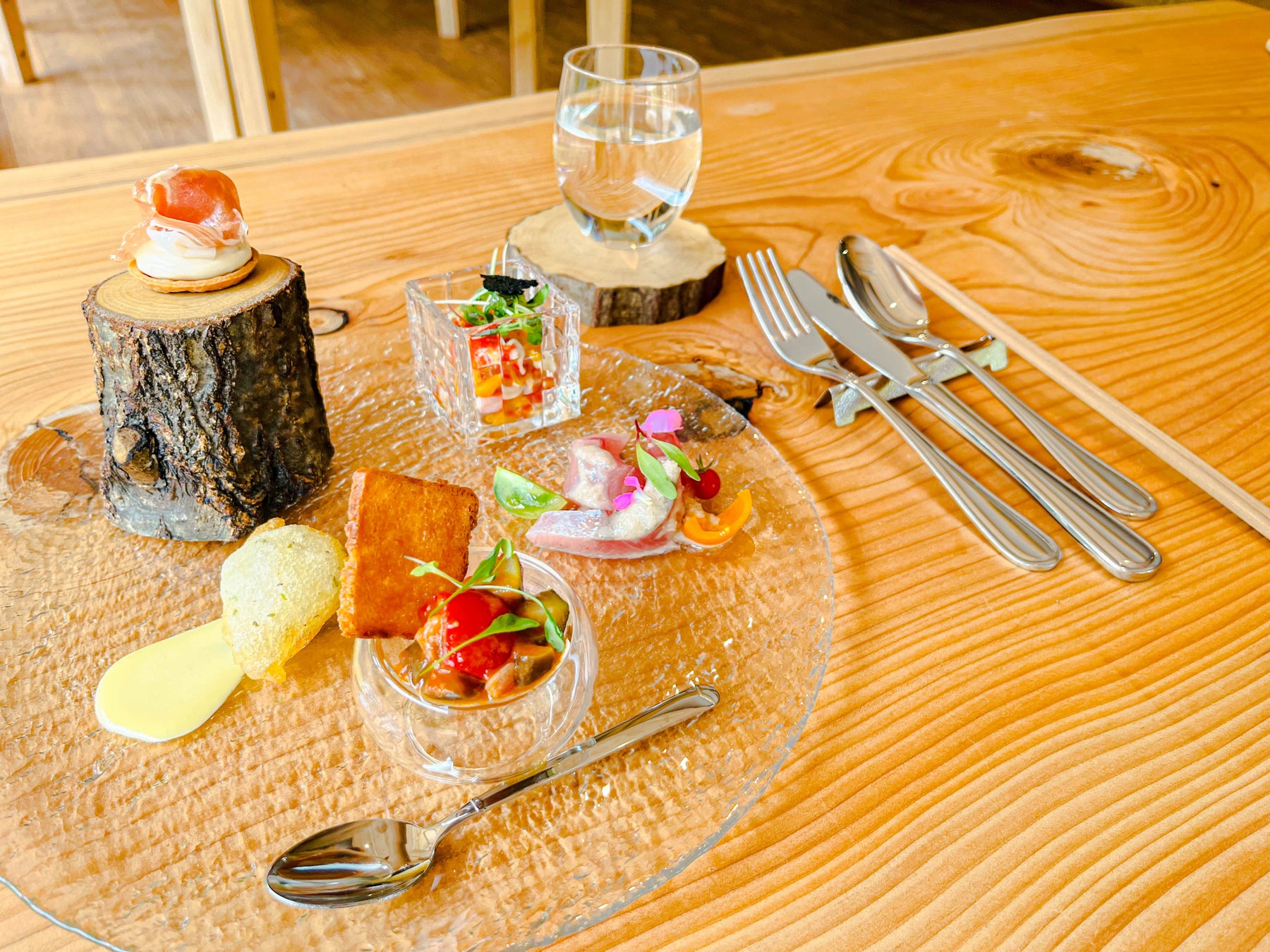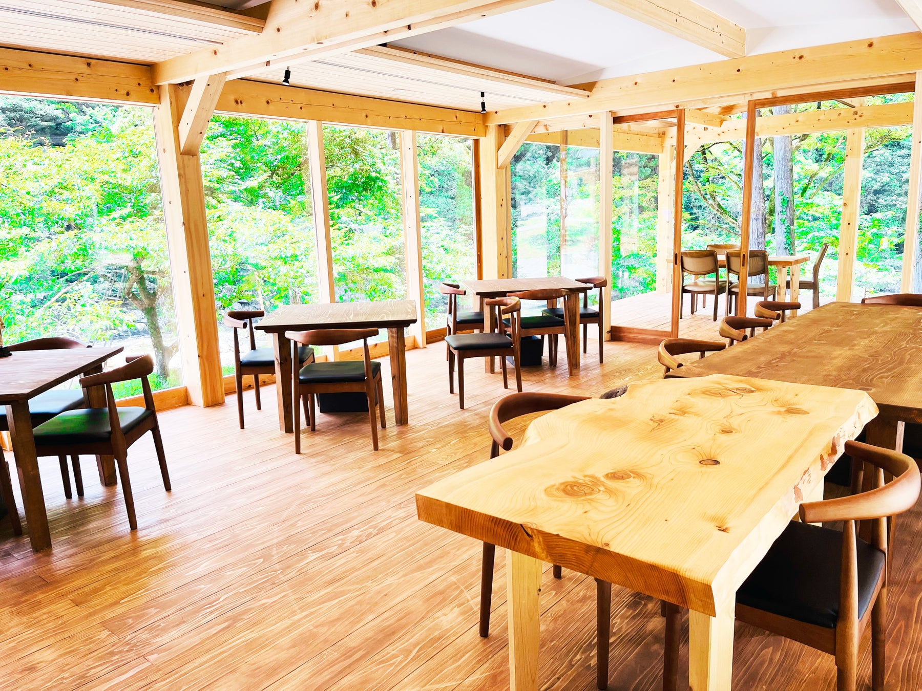 地産地消の華麗なイタリアン、木の息遣いに触れる総檜のオーベルジュ、香り高く本格的なカフェ、木立に開けた四季の趣きのある庭園。