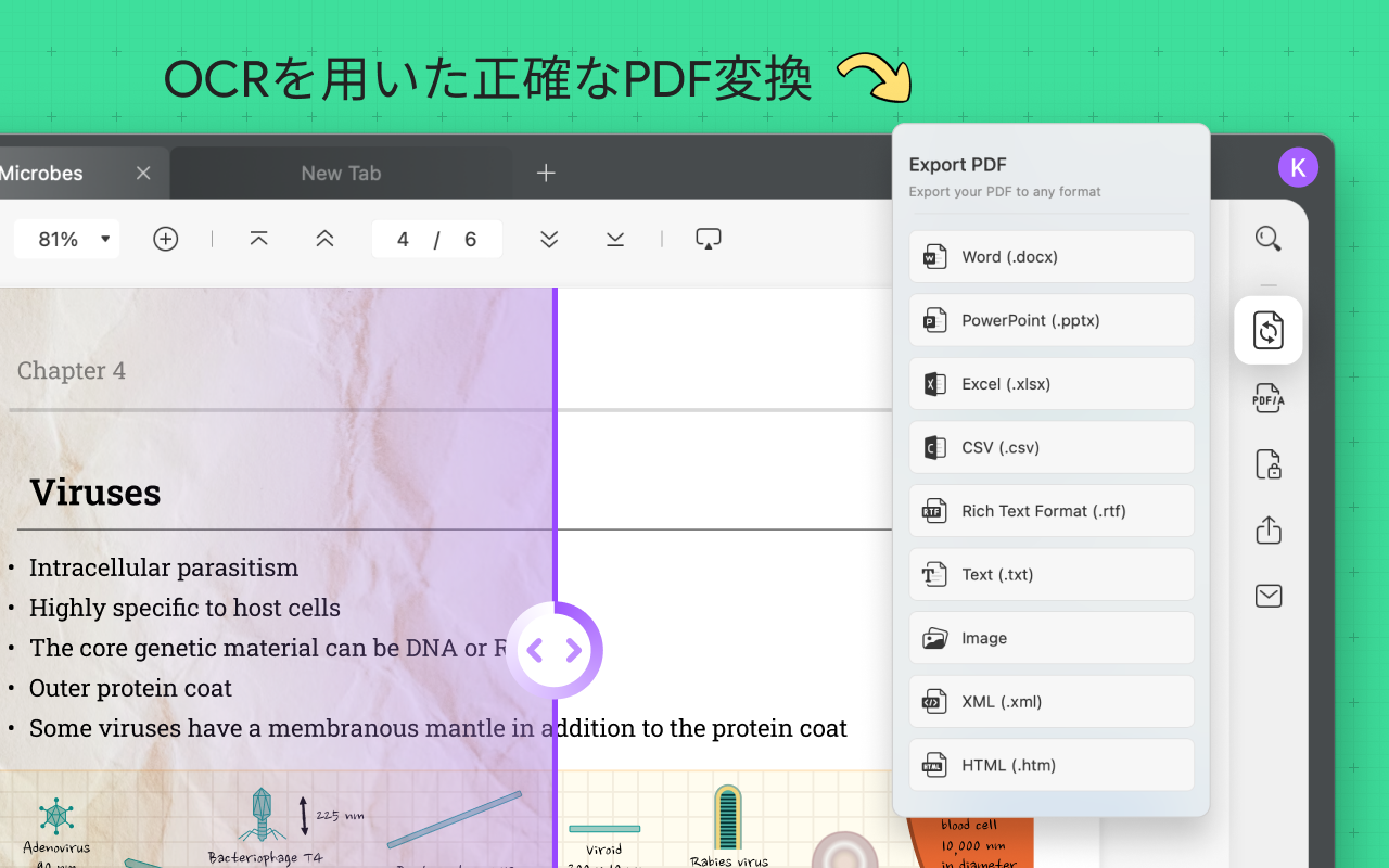 UPDFは、スキャンしたPDFファイルをスマートに変換する、AIを活用したOCR(光学的文字認識)技術をサポートしています。直感的なOCR技術がOCRの利便性と組み合わさると、ヒューマンエラーのない精度の高いなタスクを実行できるようになります。