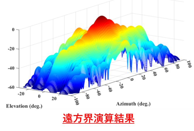 説明)マルチカット法により得られた振幅と位相より、近傍界―遠方界に変換した結果を示す。