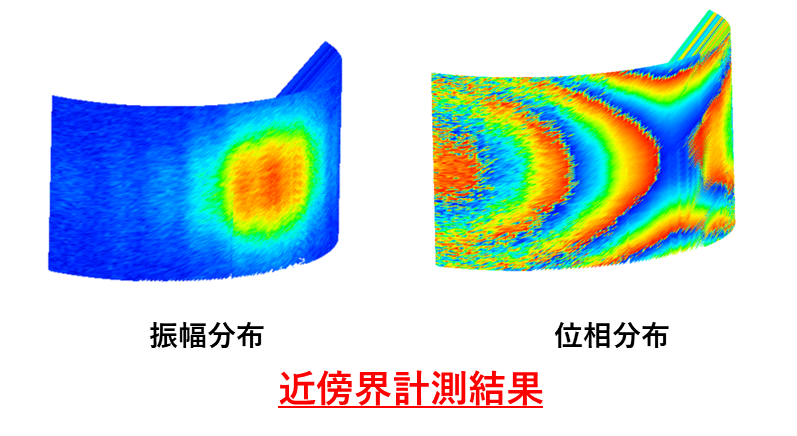 説明)アンテナ近傍を円筒走査したときの、振幅と位相の空間分布を実測によって可視化している。