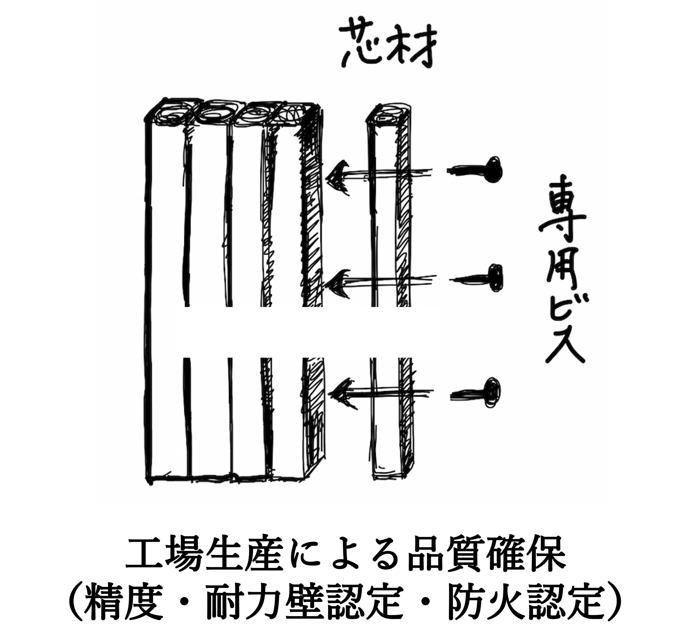 ※3耐力・防火・断熱・仕上げが一体となった無垢材の壁パネル