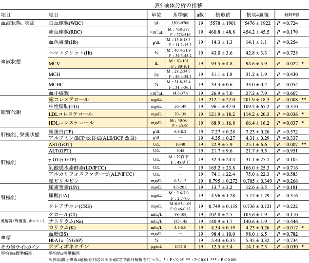 観察:2回(摂取前、摂取4週間後)