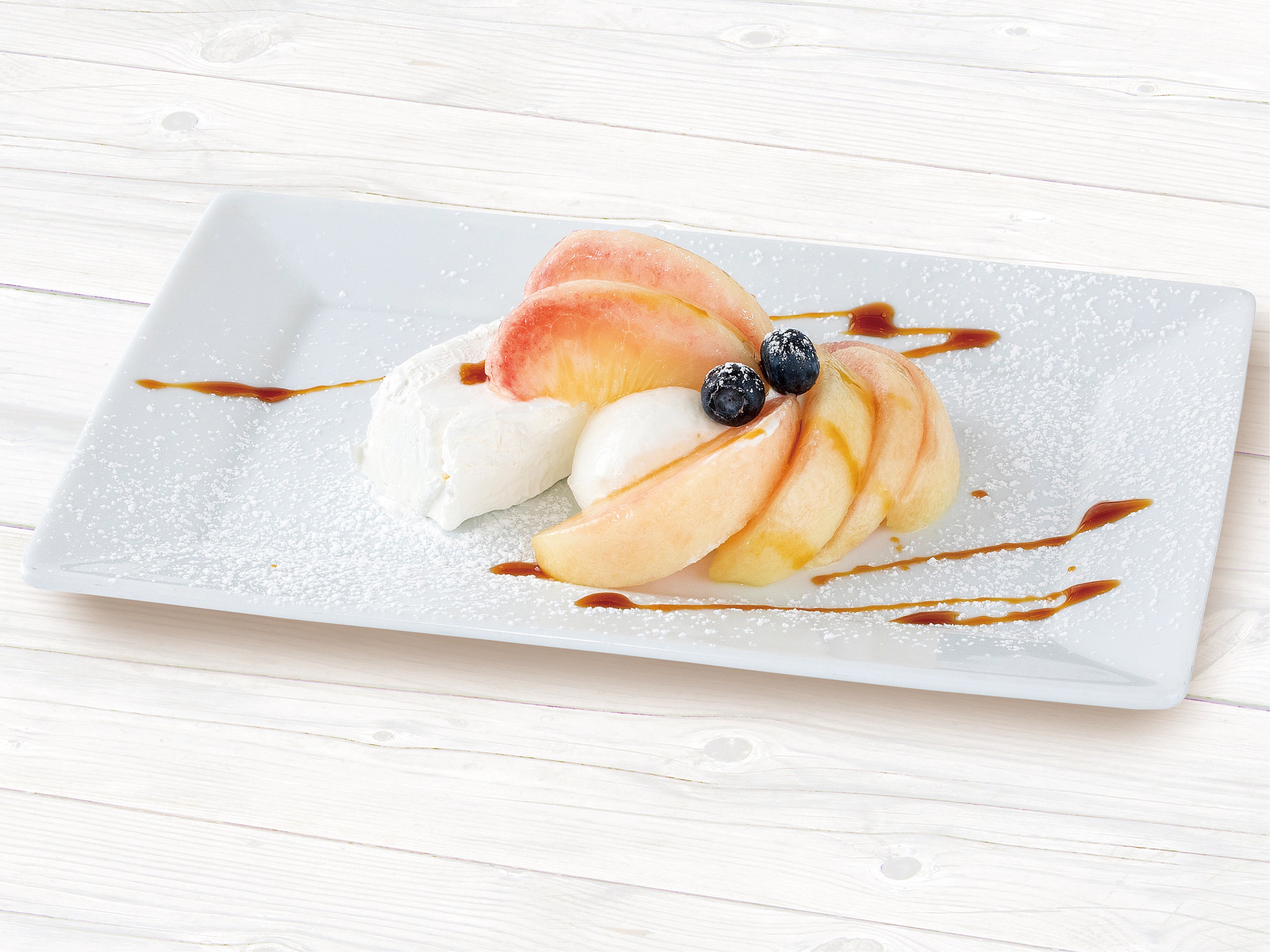・フレッシュ桃のアイスケーキ728円(税込800円) 写真右