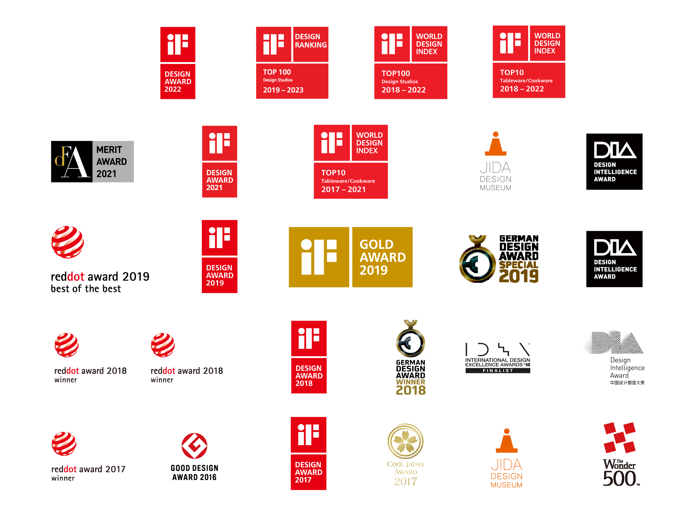 世界三大デザイン賞のiF デザイン賞 金賞(ドイツ)、レッド・ドットデザイン賞最優秀賞(ドイツ)、IDEA 賞(アメリカ)を受賞し、世界三大デザイン賞を完全制覇。これらを筆頭に更にドイツデザイン賞特別賞等、世界各国の権威あるデザイン賞をこれまで21冠受賞。