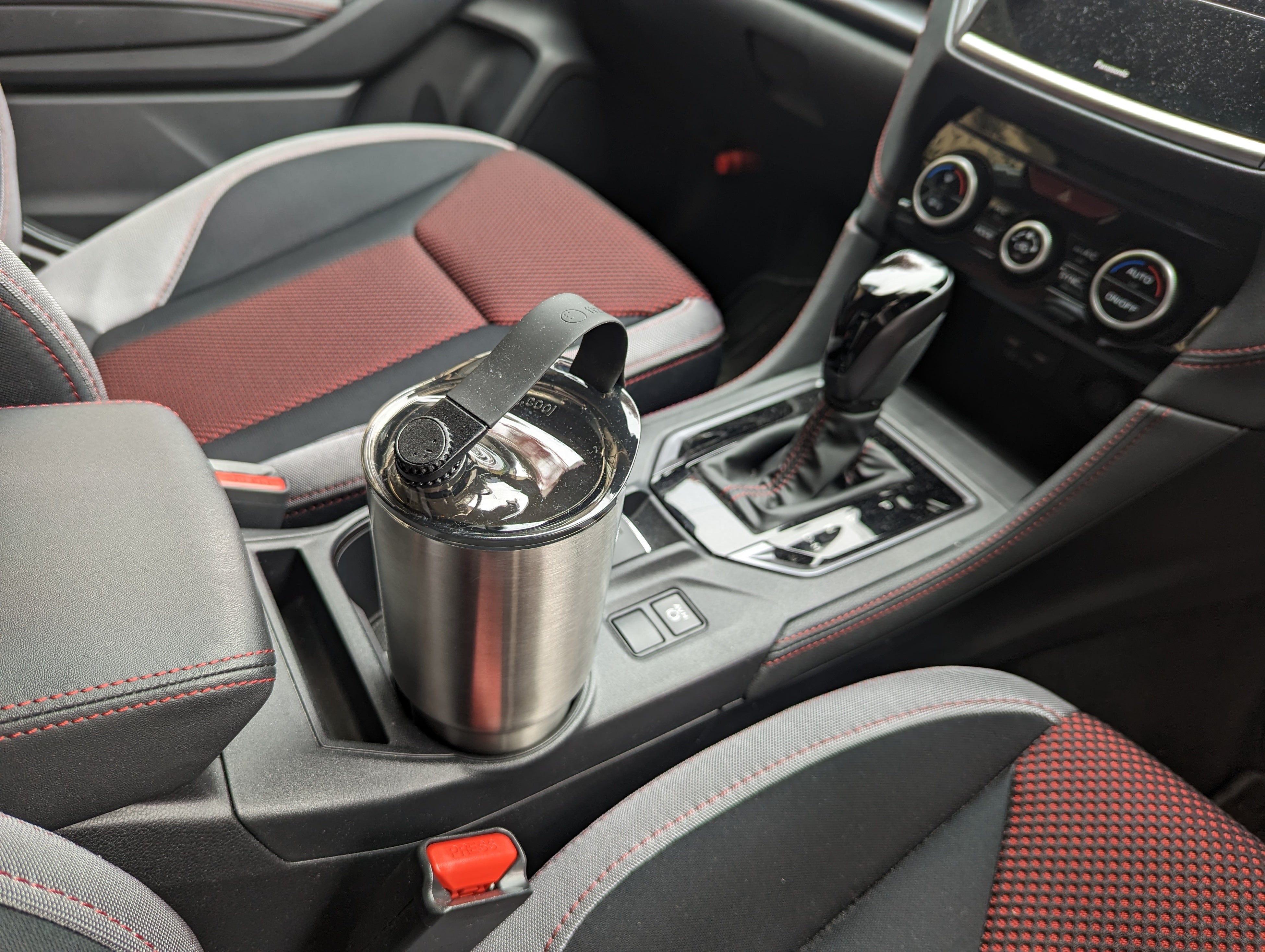 その密閉性から炭酸飲料の持ち運びも可能。カップホルダー対応: