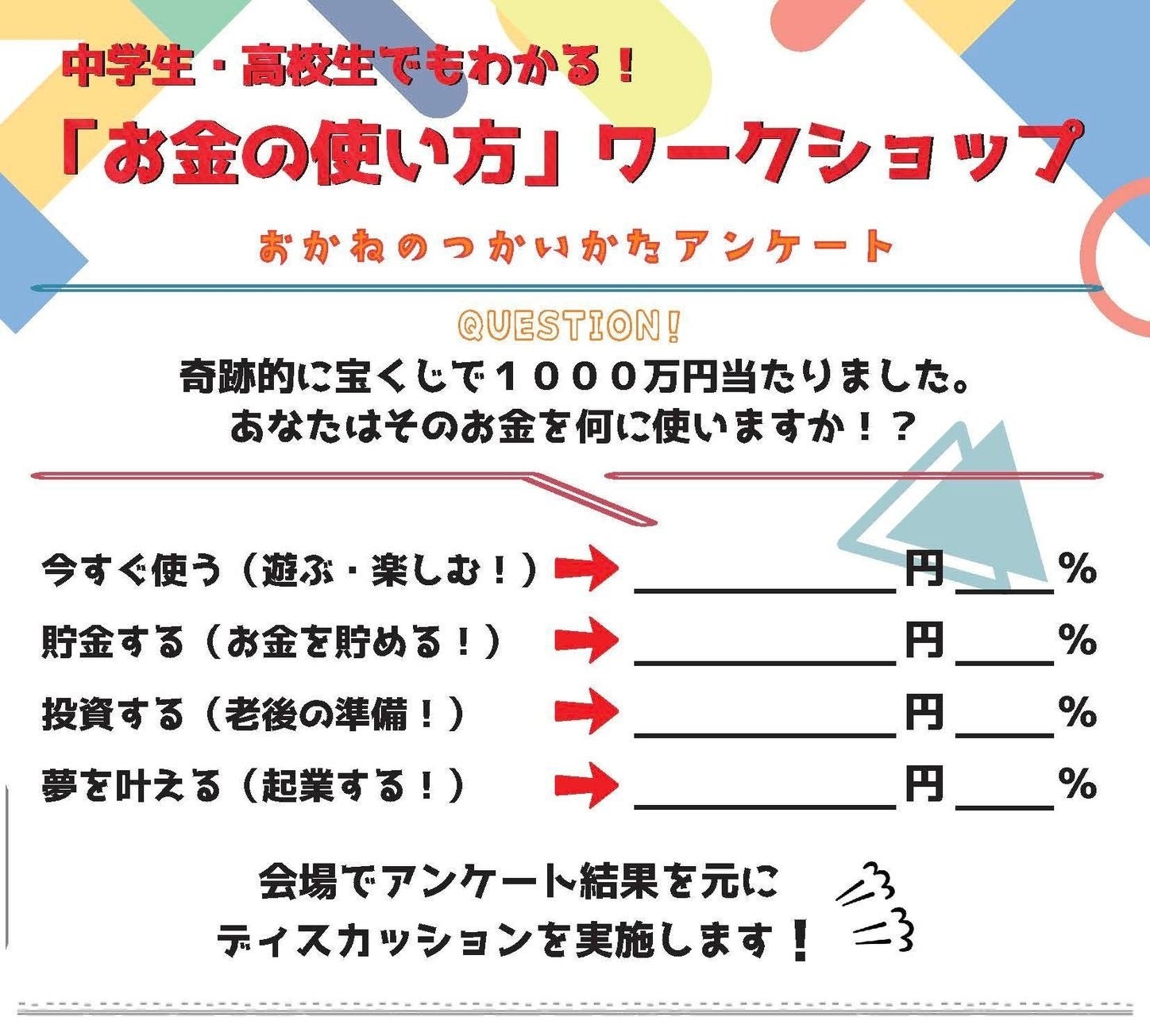 まずは子どもたちに「1000万、宝くじ当選したら何に使う?」というテーマでアンケート回答してもらい、その結果を基に「なぜそう考えるのか?」という形でディスカッションしてもらいます。